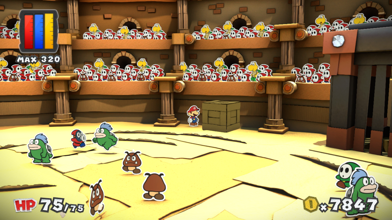 | current | 23:04, August 2, 2025 |  | 1,280 × 720 (1.1 MB) | Mid188 (talk | contribs) | == Summary == {{aboutfile |1=Mario near a crate containing Big Eekhammer Battle Card in The Golden Coliseum of Paper Mario: Color Splash. |2=Screenshot }} Category:Paper Mario: Color Splash screenshots Category:Game screenshots == Licensing == {{game-screenshot}} |
