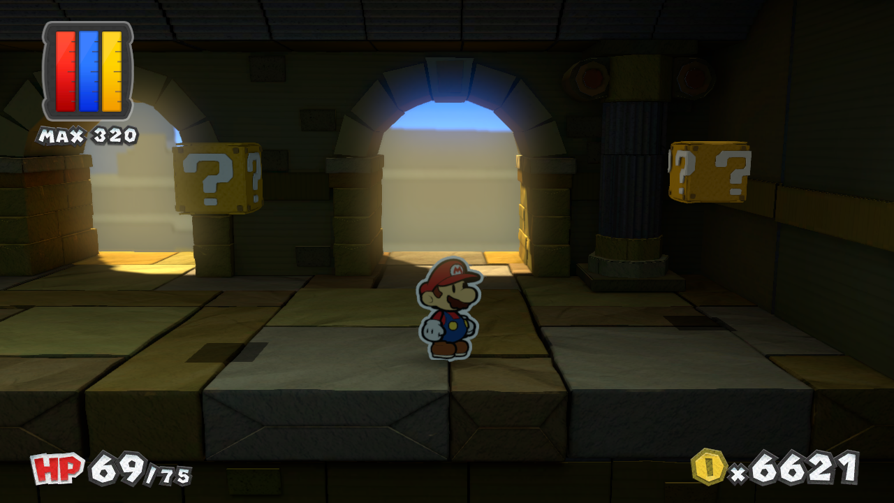 | Description | Fourth and fifth ? Blocks in The Golden Coliseum of Paper Mario: Color Splash. |