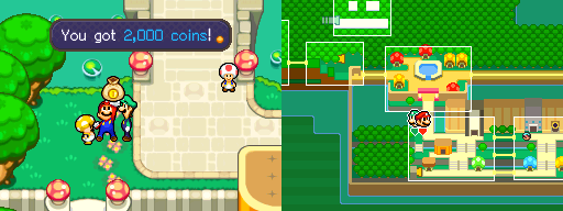 | Description | Mario and Luigi getting a coin bag containing 2000 Coins from PR Toad in Toad Town of Mario & Luigi: Bowser's Inside Story. |