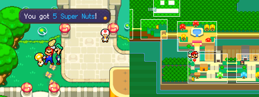 | Description | Mario and Luigi getting 5 Super Nuts from PR Toad in Toad Town of Mario & Luigi: Bowser's Inside Story. |