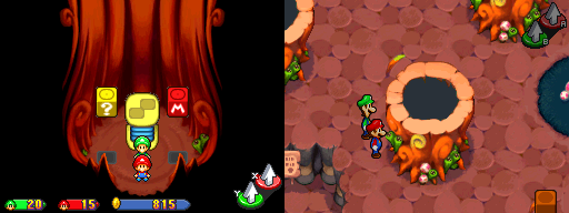 Description | Third and fourth blocks in Toadwood Forest of the Mario & Luigi: Partners in Time. |