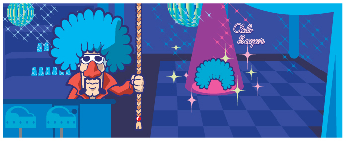 Description | Artwork of Jimmy T. in the Club Sugar from the manual of WarioWare: Twisted! |