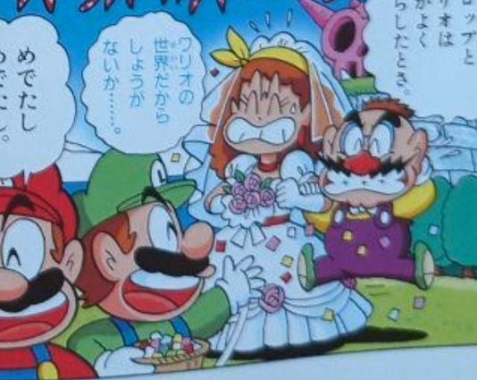 | Description | Page from Ganbare Mario showing Wario and Captain Syrup getting married |