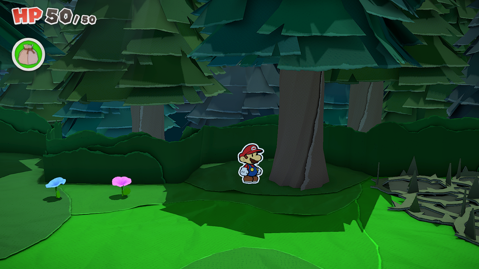 | Description | Mario standing near a tree containing a Small Bag of Confetti in Whispering Woods of The Origami King. |