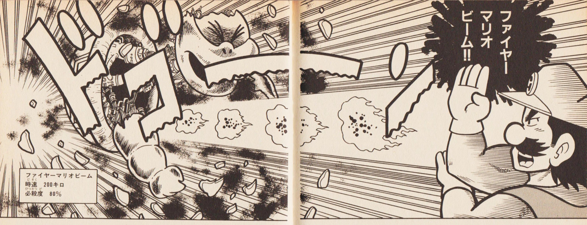 Fire Mario Beam is a move performed by Fire Mario Great in the Super Mario Bros. 4: Super Mario World 7 of Super Mario Kodansha manga.