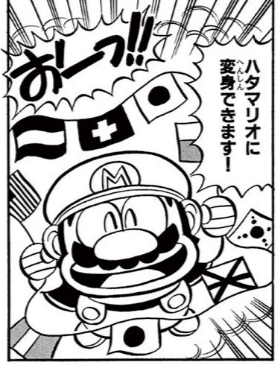 Hata Mario is a transformation that Mario comes across in Super Mario-kun volume 1.