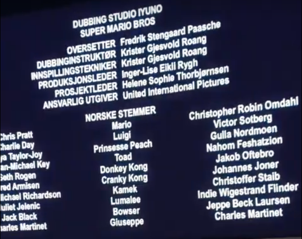 - ^ a b c d e (March 7, 2023). Slik blir Super Mario-filmen med norske stemmer. Head Topics. Retrieved March 27, 2023.