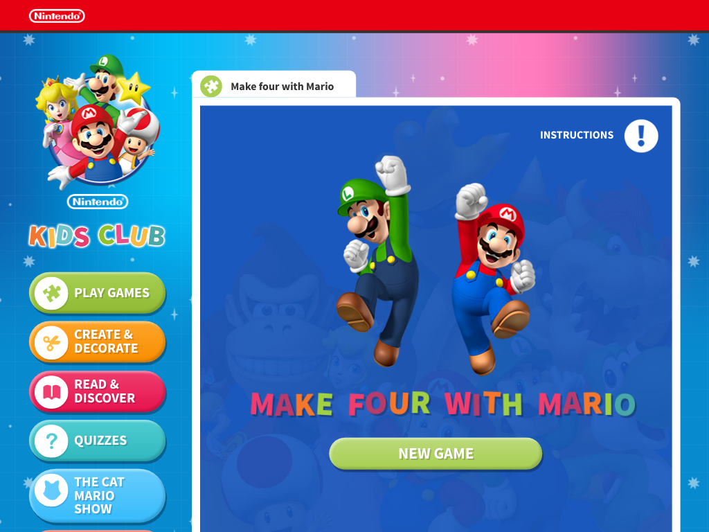 Make four with Mario is a multiplayer game on the Nintendo Kids Club website.[1]
