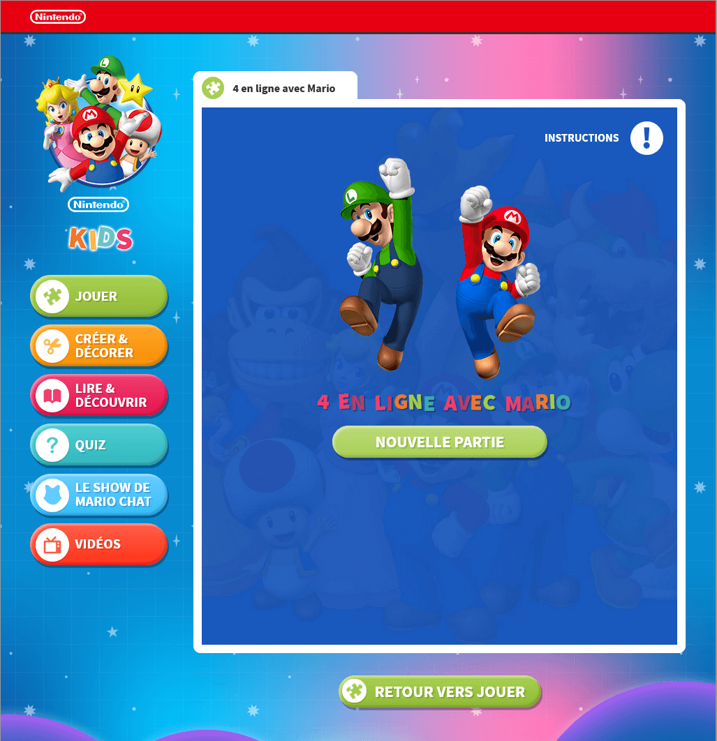 - ^ 4 en ligne avec Mario. Nintendo Kids (French). Retrieved February 16, 2020.[dead link] (Screenshot.)