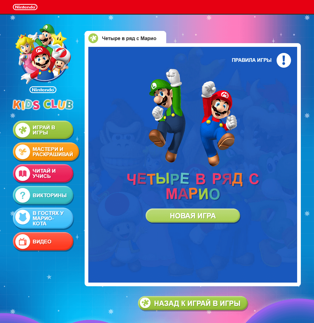 - ^ Четыре в ряд с Марио. Nintendo Kids Club (Russian). Retrieved February 16, 2020.[dead link] (Screenshot.)