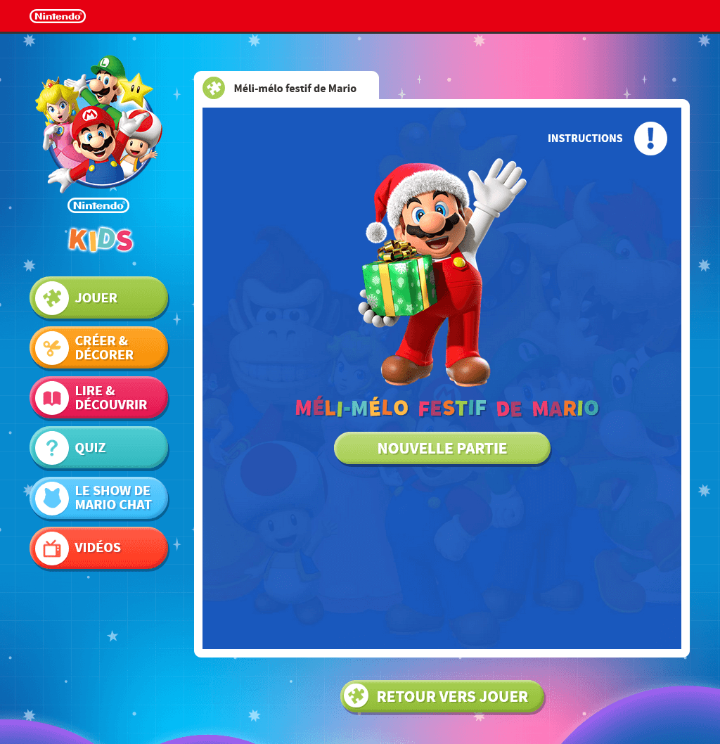 - ^ Méli-mélo festif de Mario. Nintendo Kids (French). Retrieved December 12, 2019.[dead link] (Screenshot.)