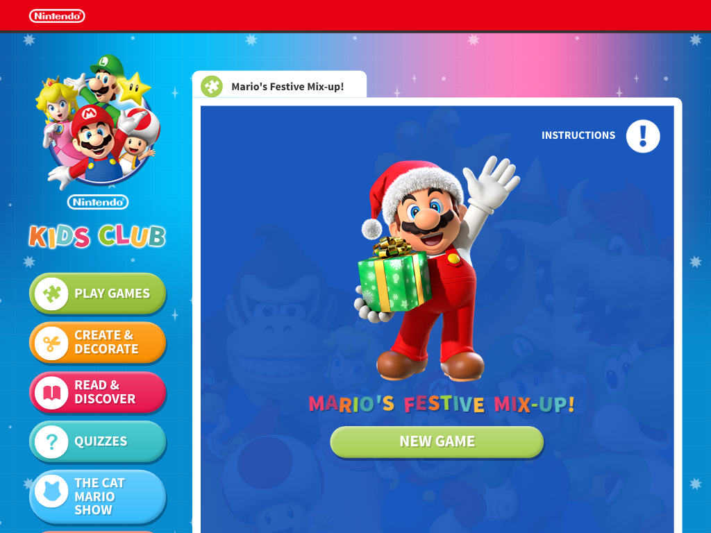 Mario's Festive Mix-up! is a game on the Nintendo Kids Club website.[1] A similar activity is available on the Play Nintendo website.