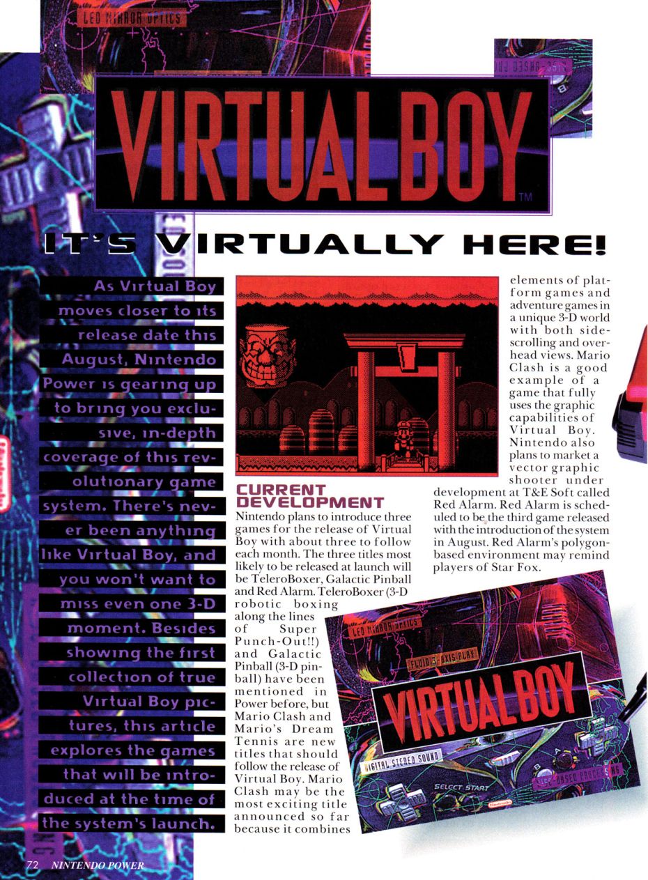 | Super Mario franchise | Mario's Tennis (1995) • Mario Clash (1995) • VB Mario Land (canceled) • VB Mario Kart (canceled) |