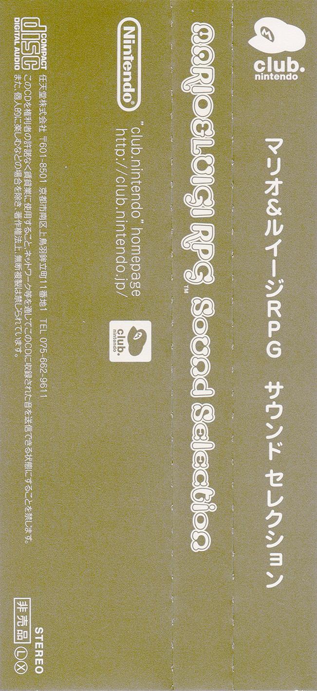Mario & Luigi RPG: Sound Selection is a soundtrack CD that was available only to Club Nintendo members in Japan. It costs 400 points to purchase and contains 33 tracks from the first three games of the Mario & Luigi series: nine from Mario & Luigi: Superstar Saga, six from Mario & Luigi: Partners in Time, and 18 from Mario & Luigi: Bowser's Inside Story.