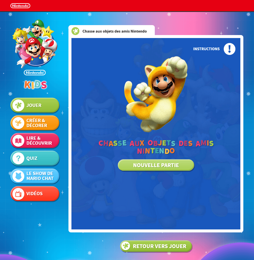 - ^ Chasse aux objets des amis Nintendo. Nintendo Kids (French). Retrieved January 31, 2020.[dead link] (Screenshot.)