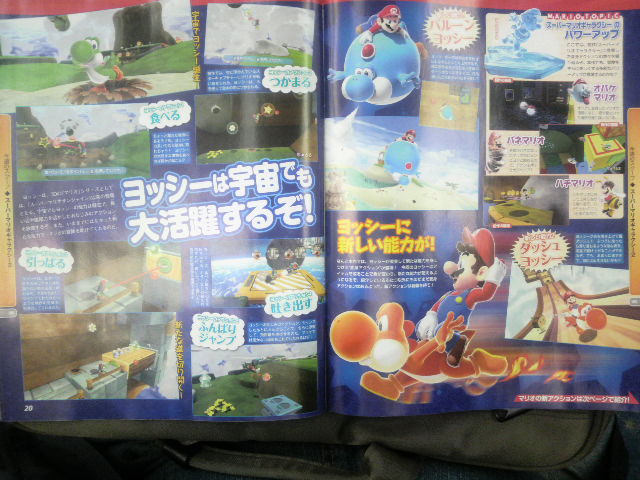 | ピーチ姫からの招待に胸を(何か)らせマリオが星降る草原を走っていると草むらから、不思議な光が見えました。 | Clutching(?) Peach's invitation to his chest, Mario hurried to falling star plains, where he saw a mysterious light emanating from a bush. |
