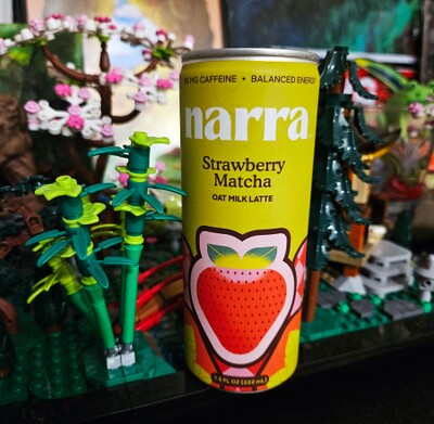 As I was researching and reviewing ready-to-drink coffees and lattes it became clear very quickly that interest in matcha was a market that nearly every company was trying to angle towards in one way or another. Specifically, strawberry matcha has been en vogue since late 2024, showing the sheer power of social media virality–specifically TikTok–and how quickly the market and companies can pivot to immediately fill those interests in ways I’ve never seen so quickly until recently. Matcha itself has been having a moment, being perfect for the current socioeconomic landscape in which food has become a symbol of wealth and status alongside a new diet culture obsession; it’s seen as exotic, unique, aesthetically striking, sophisticated, rooted in tradition, healthy, an easy slide from the late coffee craze, it just makes perfect sense that matcha would be it right now. The addition of strawberry is simply due to fruit additions being popular–for both taste and visuals–with strawberry just happening to be the one that aligns just right on the chart of cost-of-ingredients and broad likeability. I’ll be honest and say that I’m not really a big fan of matcha, or even green tea, so I’ve never really looked into this craze much, until I tried Narra latte drinks a few months back, with a Strawberry Matcha in their catalog.