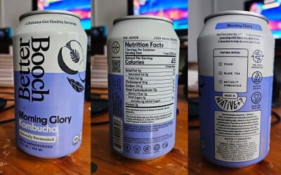 Morning Glory is peach and black tea flavored kombucha, raw and unpasteurized, naturally fermented, and looks to be one of their best selling products. On sale at Sprouts for $2.49, 20 cents off, for a 16 fl oz can back in 2021, and now $2.99 for a 12 fl oz can at Earth Fare here in 2025, showing roughly a 50% increase in price. Incredibly and relatively inexpensive for something self-described ‘premium small craft’, but that’s another change in 2025: they no longer call themselves premium small craft. They also drop actually saying what the flavors are on the front and just have ‘Morning Glory’ on the front, swapped out ‘sparkling probiotic tea’ for ‘naturally fermented’, and most curiously the addition of a “Native+™ Synbiotic Blend”. Information on their website (and the can, just really tiny text) states that the Native+™ Synbiotic Blend ‘at the time of manufacturing’ includes: “PREBIOTIC FIBERS: Chicory Root. Organic Jerusalem Artichoke, Probiotics: Bacillus coagulans SNZ 1969®, Lactobacillus delbrueckii¹, Saccharomyces cerevisiae¹, Bacillus subtilis, Bifidobacterium bifidum, Bifidobacterium breve, Bifidobacterium lactis, Lactobacillus rhamnosus, Streptococcus thermophilus, Postbiotic: Bifidobacterium longum CECT 7347 ES1 *POSTBIOTIC FIBERS: Bifidobacterium longum CECT 7347 ES1 ¹From our Native Kombucha Culture”. This is a lot of words to say that there’s a lot going on in here, with Better Booch wanting to put focus on how they’re backed by science to better support balance with digestion, immunity, and focus; though I find it more notable to point out that it’s hard to find any other popular kombucha brand that either has all of these, or is open about spelling it all out, which does lend a good deal of cred to Better Booch. Other ingredients include purified water, organic cane sugar, organic black tea, kombucha culture (yeast, bacteria), and natural peach flavor, and boasts naturally existing L-theanine alleging it helps sharpen your focus. Vegan, kosher, raw, gluten-free, organic, Non-GMO Project Verified, and non-alcoholic, Better Booch tries hard to hit all of the buttons.