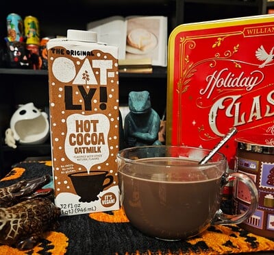 It’s been over 5 years since I last tried Oatly, and while I rated it one of the best alt-milks I’ve tried I haven’t had them since because a lot more options started coming forward. Oatly (and its rebrand) became so popular that the effectively single-handedly made oat milk THE alternative milk of choice, which greatly increased demand that they could not fill, resulting in vast shortages allowing competitors to innovate and replace. Through this market saturation and just natural business recovery over time they have added (and removed) quite a few products and varieties including creamers, ice cream, flavor variations, and most importantly this month Hot Cocoa Oatmilk.