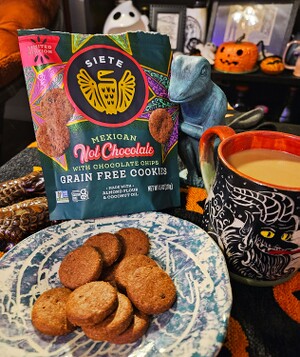 Siete Family Foods from Austin, Texas, makes an incredible variety of Mexican-American foods, including chips, cookies, snacks, seasonings, sauces, salsas, beans, taco shells. tortillas, all focused on family and heritage with a goal to be healthy and mindful without neglecting taste and texture because “a taco just doesn’t taste the same in a lettuce wrap”, admitting a truth that many vegan and alt-food makers refuse to grapple. A special highlight is their Team page, which has an extremely adorable and fun and expansive list of childhood photos of their team members and their most nostalgic foods. I have had their Mexican Wedding Cookies before in a non-review capacity which I need to allow myself to do more often, and I enjoyed them enough to snag a few more. Alongside that, what I saw was a cool bag design and ‘limited edition’ on their Mexican Hot Chocolate Cookies which was all it took to convince me to pay the full price of $4.99 for these at Sprouts.