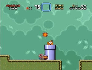 Pipe Lakitus are basically just Lakitus. They throw Spinies just like Lakitus. There are really only three differences. The first is that, when a Pipe Lakitu is defeated, another Lakitu doesn't take its place (whereas if you beat a regular Lakitu in Super Mario World, another one will fly in eventually). Two, Pipe Lakitus can duck into pipes to avoid the player. Three, Pipe Lakitus are way lamer then regular Lakitus. Pipe Lakitus throw a single Spiny before retreating into their pipe. Contrast that with regular Lakitus, who constantly attempt to throw Spiny death from above at you! Couple that with the fact that Pipe Lakitus can't pursue the player, and you have a really lame enemy! It's just an objectively worse version of Lakitu. There's nothing special! It does the same thing as Lakitu, just worse!