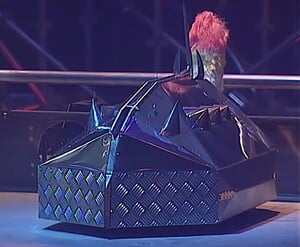 As for the robot, The Steel Avenger's axe is fairly powerful but I think it's handicapped by the sloped front since it's much harder for them to land head-on axe blows if robots are bounced away from them. Still, The Steel Avenger would oftentimes prove to be one of the more reliable axe bots. The Steel Avenger always existed in that upper-midcard level of Robot Wars, to use a wrestling term. It was never a true championship contender, having never made a Series Semi-Final, but it did have some notable wins such as defeating Tornado and King B3 Powerworks in its Extreme 1 Mayhem battle to qualify for the cursed second Annihilator of Extreme. Now, you might argue that they only beat Tornado because King B3 killed Tornado, and, while that might be true… Shut up! We talk about it like that! They also made the Tag Team Terror final with partner Suicidal Tendencies in the same Series and made a Heat Final in Series 4. All of that paints a picture of a pretty-good-but-not-great robot. The Steel Avenger would defeat the robots it should have defeated, but it never managed to score that big victory that would put it in the Semi-Finals or allow it to win a tournament. But still, it's one of the few classic series axe bots that did… well, anything really! That puts it in league with, like, Dominator 2 and Killertron.