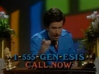 Now it's Tony's time to shine! He's seen in the back seat of a vehicle (I think a limo?) where more magazines spin towards the screen. He is then seen on a TV screen, where the text ** 1-555-GEN-ESIS ** CALL NOW is displayed on the screen. Him, Phil, and Mike then get on their knees and lift their hands up like they're praying. The final scene of the video shows a charity event where $18,000,000 are raised.