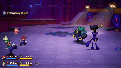Sneak attack: Sometimes Ecks leaves the battle, making him unable to be attacked while he's gone. After a turn or two, he will attempt to sneak up behind Mario or Luigi before charging at them. Ecks must be jumped over to avoid taking damage. If timed right, he can be stomped on, damaging him.