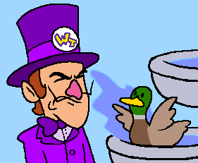 The next morning, Waluigi Time came into work, eager to continue building, only to find that a flock of ducks had nested in his fountain, splashing around and quacking up a storm. This was seriously disturbing the serene vibe that he was going for! Clearly, these ducks had to go, Waluigi Time thought. When he asked around to find out what the heck was going on, he discovered that the ducks had been brought in on Sparks' orders. That couldn't have been right - surely he mentioned his plan to fill the courtyard with rabbits, not ducks, didn't he?