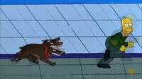 This time, Homer's attacked by a ferocious T-Rex, but he jumps his way to safety. Phew! Before Homer returns to the present, he unintentionally crushes a walking fish, resulting in a good future where the family is rich and living in prosperity. Everything seems perfect, until Homer sits down with them at the dinner table. He asks Marge, "Would you kindly pass me a donut?", to which she replies "Donut? What's a donut?" Realizing this isn't a good future after all, Homer screams and the text GAME OVER appears on the screen. Turns out a world without donuts is Homer's worst nightmare!