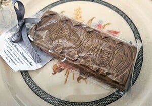 Adam Turoni’s Peanut Butter Chocolate Bar was an easy pick for me, being a 35% milk chocolate bar with homemade peanut butter filling, elevated further with black lava Cyprus flake sea salt and a dusting of edible 24k gold powder. $6.75 for individual bars at the shop, but currently $12 for two bars online (watch out for that $16+ shipping fee), which is definitely more than what you’d pay for conventional bars but is a phenomenal craft chocolate price ESPECIALLY at local and handmade levels. While I wouldn’t call this a mind-blowing chocolate bar, it’s very good for a milk chocolate bar that many artisan makers turn their noses away from, maintaining richness that properly celebrates what chocolate can be while still being crowd-pleasing. Sweet, creamy, nutty, warm, with a peanut butter filling that feels the same, but the [kaicaochocolate.com/a/resources/cacao-recipes/why-salt-enhances-the-flavor-of-chocolate-a-culinary-exploration sea salt adds a fascinating layer] that makes each bite a little different and exciting. The black salt on it is made that way with activated charcoal, which allows makers and users to attach all kinds of detox pseudoscience health cure-all claims they feel like to be instantly believed by a disappointing amount of the human population, but luckily Adam Turoni only really uses it for a cool factor, and I’m honestly here for it. The gold powder adds absolutely no flavor, but I am a little into it with how it makes the chocolate bar look as it’s just a bit of warm shimmer to it that gives it a subliminal weight of importance that made me take careful and calculated bites to properly savor.