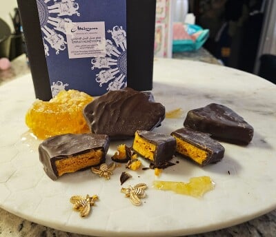 With most of my experience with honeycomb candy coming from Buffalonian sponge candy, the Mirzam Honeycomb is shockingly good in comparison. Very obviously a higher quality chocolate and candymaking process, and just a better consistency with the honeycomb candy. It cleaves nicely when taking a bite, rather than splintering and smashing crumbs everywhere, and has a good firm and snappy crunch. The chocolate coating adds a nice touch of creaminess to help smooth out the sharper honeycomb flavor, and acts as a bit of a foil to how sticky and caramely it is, though it still easily gets stuck all over my teeth. The honey itself is from sidr trees, and hold a lot of magical, medicinal, and religious claims and insinuations, ramblings of miraculous craftsmanship in every review and description I can find that just makes everything feel fake especially when it just tastes like every other kind of honey I’ve ever had. Sweet, a little floral, almost buttery with how similar to toffee it is, but ultimately it’s just well-made honeycomb that can be handled with a calmer approach.