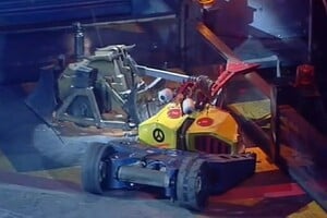 Despite appearances, Robochicken is a serious enough competitor that, while doing poorly in the previous heats (having crashed out in the second round of Series 4 and the first round of both 5 and 6), Robochicken does have a tournament championship! It won the Robot Wars Extreme 2: Tag Team Terror with its partner Bulldog Breed. Now, of course, it only won that in the most legal sense possible considering Bulldog Breed did literally all the work during that tournament. But still, Robochicken does have a combat championship (unlike certain robots - AKA Hypno Disc). And Series 7 was a strangely traditional year for Robot Wars, with plenty of new faces making the semi-final, so maybe this is Robochicken's year to take flight!