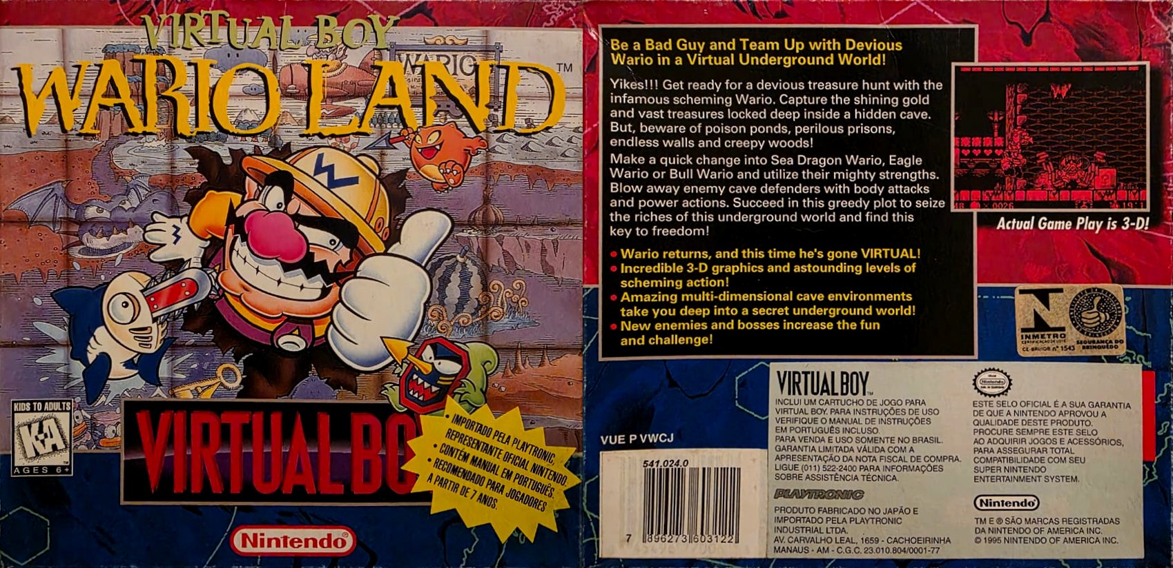 Virtual Boy Wario Land (also shortened as Wario Land) is a video game released by Nintendo for the Virtual Boy in 1995. It is the second installment in the Wario Land series, and the follow-up to Wario Land: Super Mario Land 3. It is a side-scrolling platformer that shares several elements from its predecessor, such as hat-based power-ups and collectable treasure which can affect the game's ending. The game also incorporates several new elements that use the Virtual Boy's technology, such as the ability to jump between background and foreground areas, and enemies and obstacles which do the same. The game was well-received on release, and is generally considered by critics to be one of the Virtual Boy's better titles.